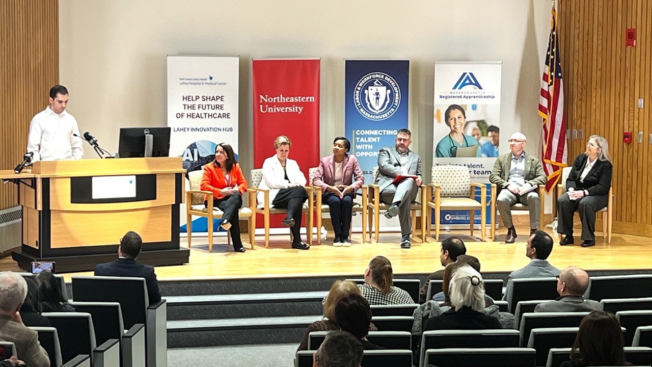 Looking toward the future of healthcare, Lahey Hospital & Medical Center has partnered with Northeastern University, the Commonwealth of Massachusetts and its Executive Office of Labor and Workforce Development, to launch Massachusetts’ first artificial intelligence healthcare apprenticeship program. The initiative, part of Lahey’s Innovation Hub, focuses on applying A.I. within healthcare systems. Northeastern University analytics major Diego Martins is the first apprentice in the new program.