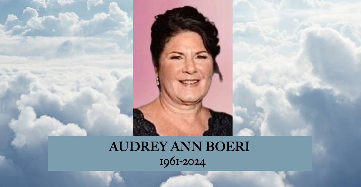 Audrey Ann (Fredette) Boeri, age 63, passed away at her home in Burlington, MA on July 16, 2024 with her loving family by her side, following a courageous battle with ALS. She was the devoted wife of David Boeri, with whom she had shared 35 wonderful years of marriage.