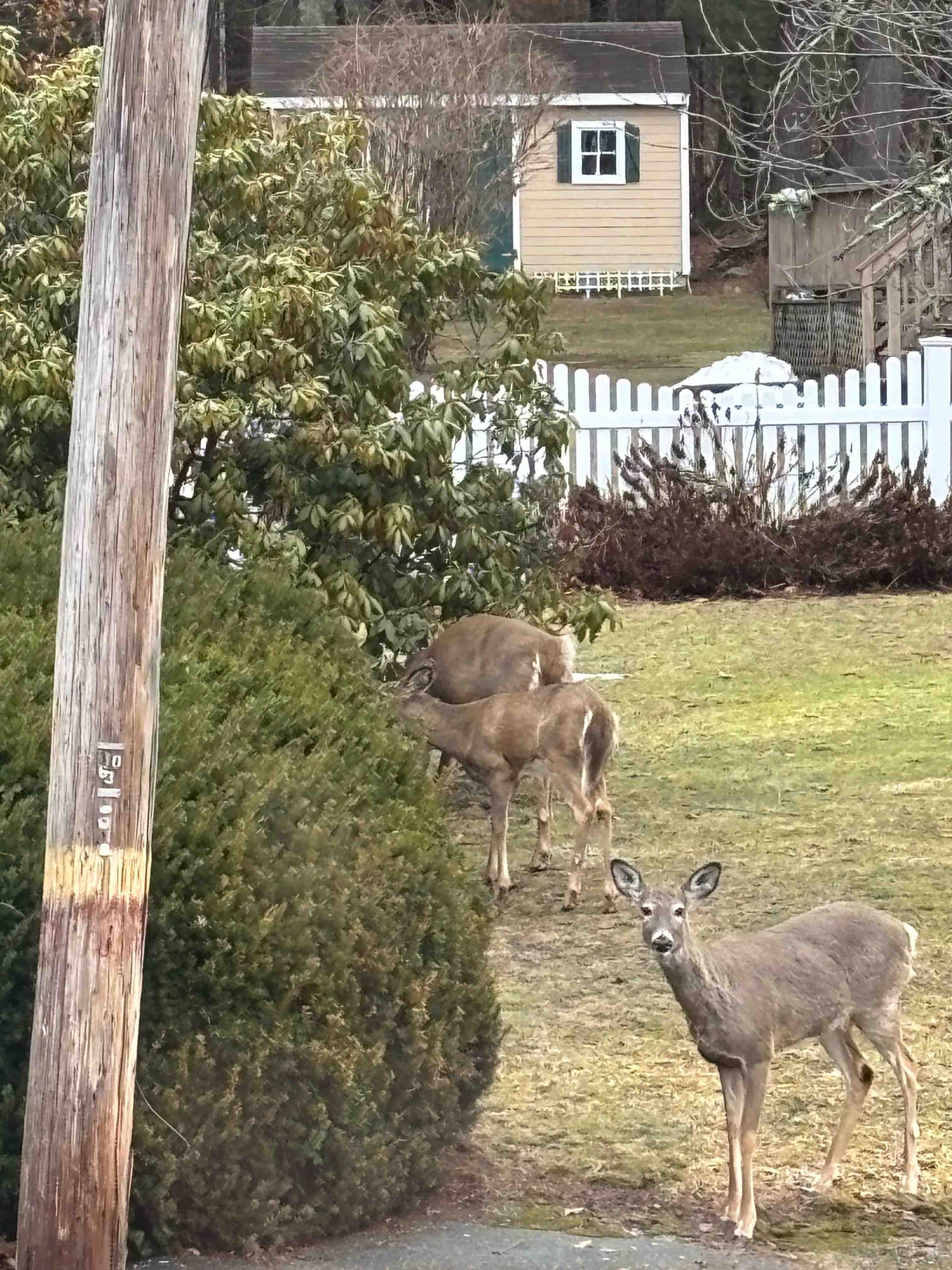 Paul McNamee got this great shot of three deer passing through his yard and sniff around for something to eat. Thanks Paul.