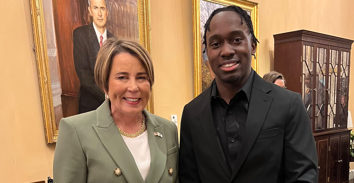 Recent Burlington High School graduate, Haris Mukanga, was recognized during the Governor’s State of the Commonwealth Address last Thursday, January 16, for his participation in BHS’s Technology Innovation Career Pathway.